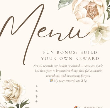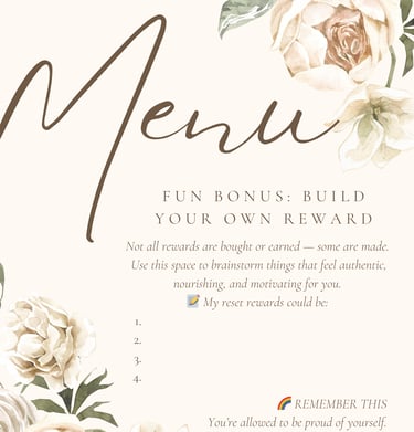 🌟 Rewards Menu – Tiered by energy level, so you can choose your post-task treat whether you’re wiped or winning.