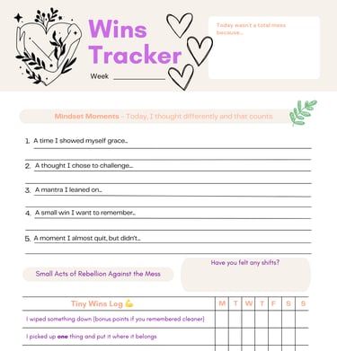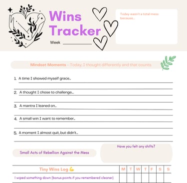 🎯 Wins Tracker – A page to highlight your progress and remind you that every small win counts. Like a habit tracker but infinitely more motivating.