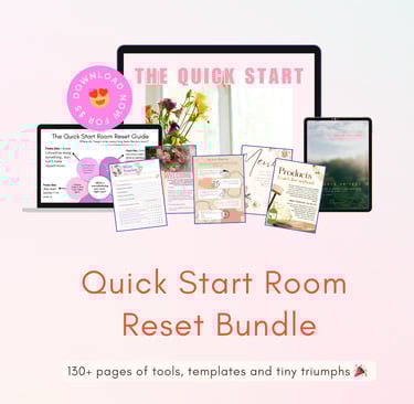 A ready-to-use room reset rescue kit for busy, burned out, beautifully human people who just want to feel better at home.