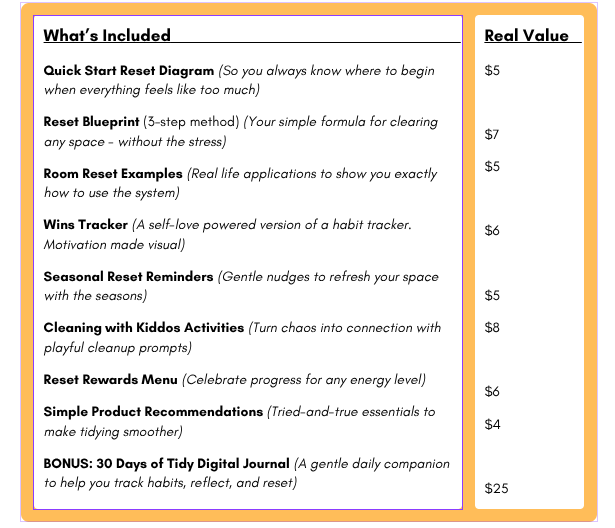 🌀 The Reset Blueprint – A flexible step-by-step method you can apply to any space without the overwhelm.