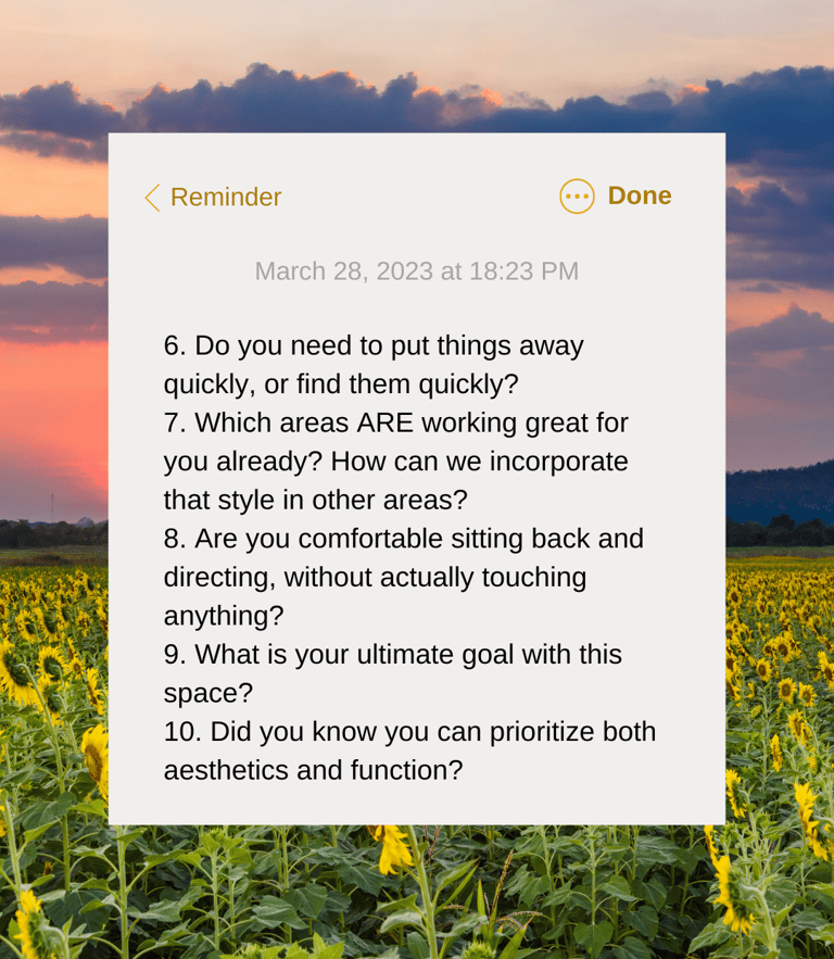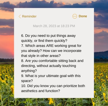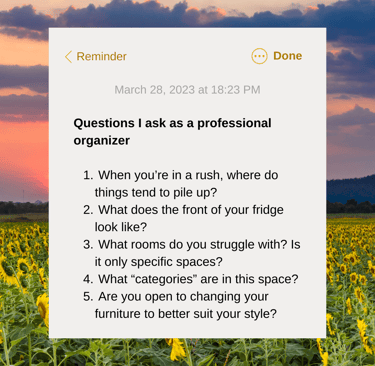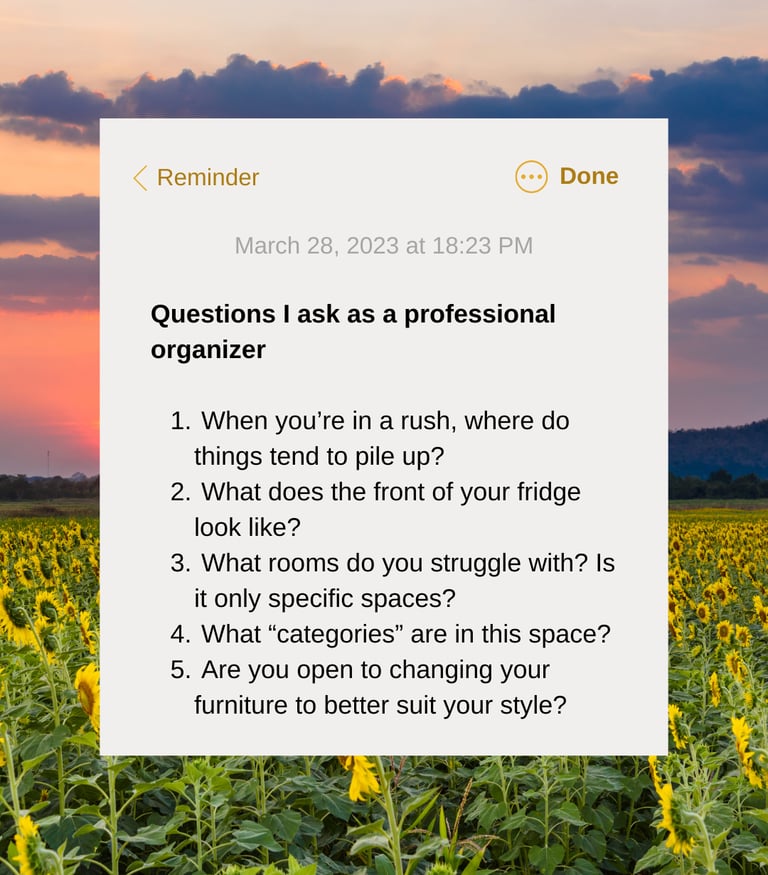 💭 Questions I Ask As a Pro Organizer - A self-assessment to make your space work for your real life. Coming soon to a guide near you. 👀