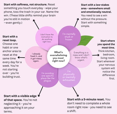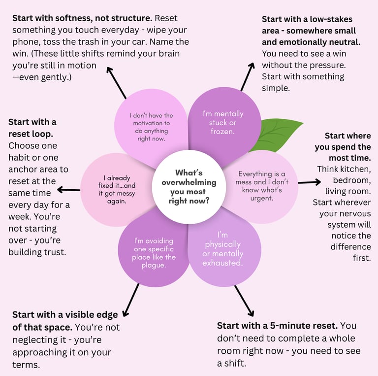 It’s not a chore list. It’s not a Pinterest fantasy. It’s a visual prompt for when your brain is too tired, too stressed, or too overwhelmed to figure out how to function in a space that feels like chaos.